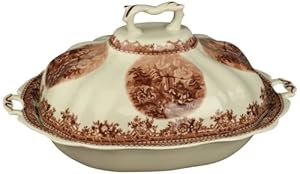 Brown and White Porcelain 12 Wide Tureen Category: Home & Kitchen